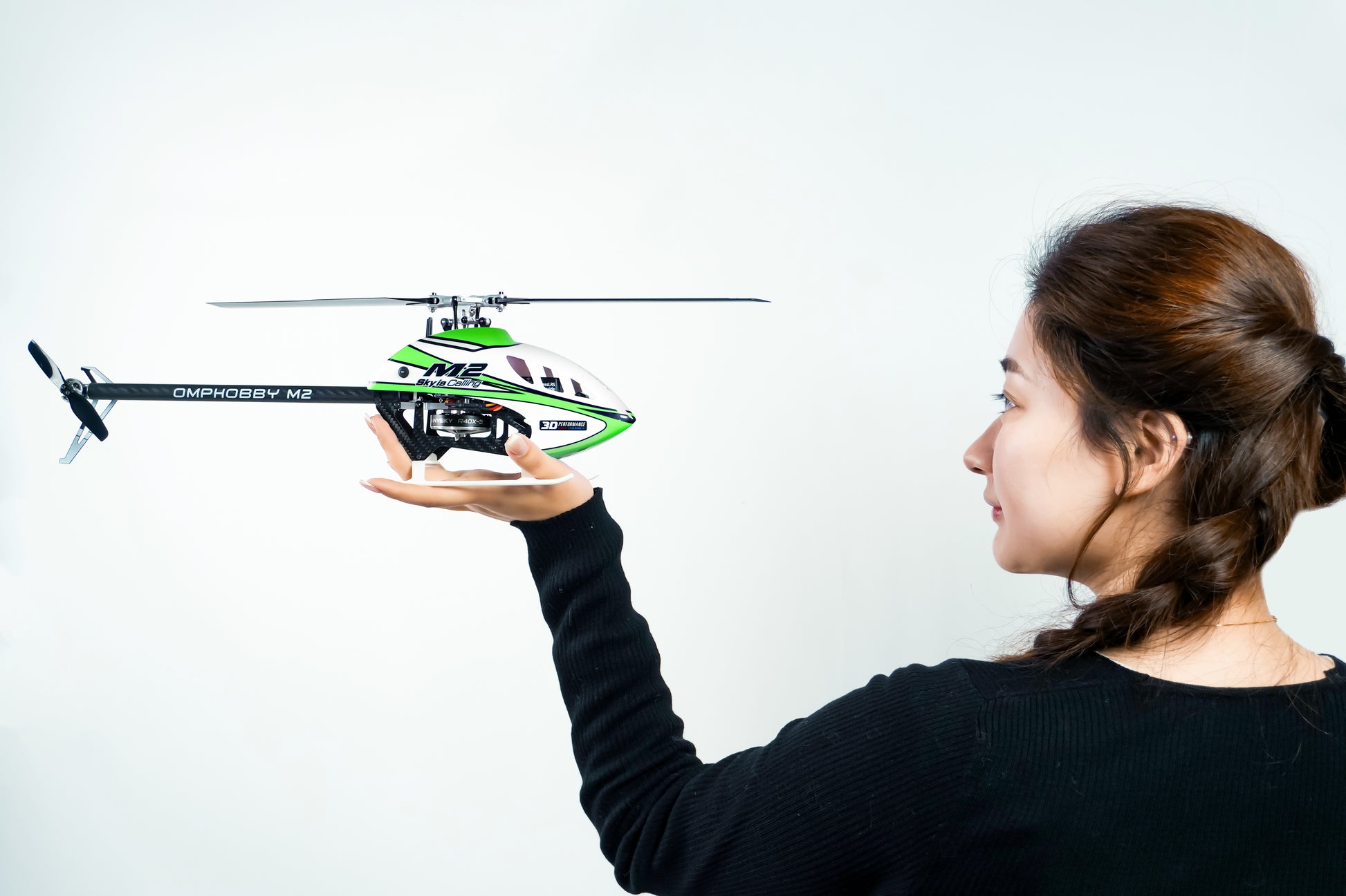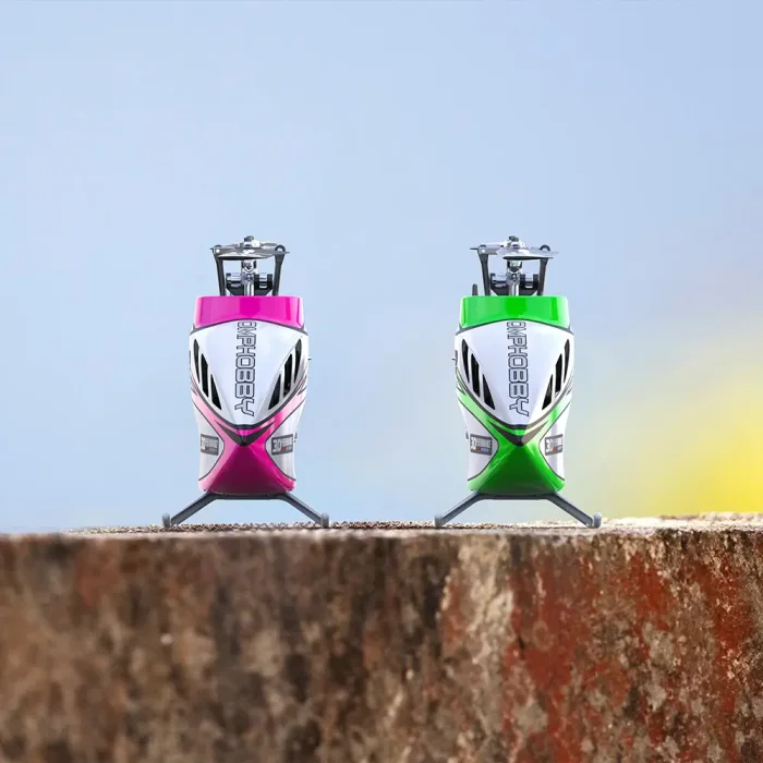 OMPHOBBY M2 V3 Sport 3D RC helicopter, evolved over 6 years with 3-gen air dominance. Boasts OFS3 flight control, pro main rotor, high-efficiency motor & ultra-light tail system. Available in Nebula Pink/Aurora Green, with precise flight performance and sleek dual-tone designs.